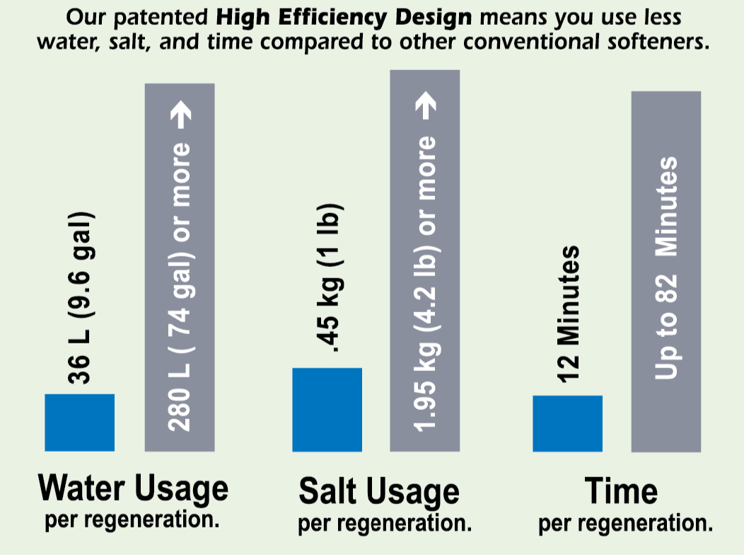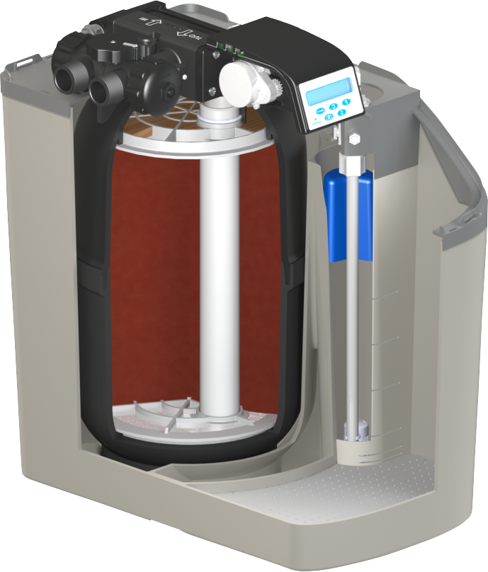 - The patented packed bed mineral tank eliminates the need for a second tank